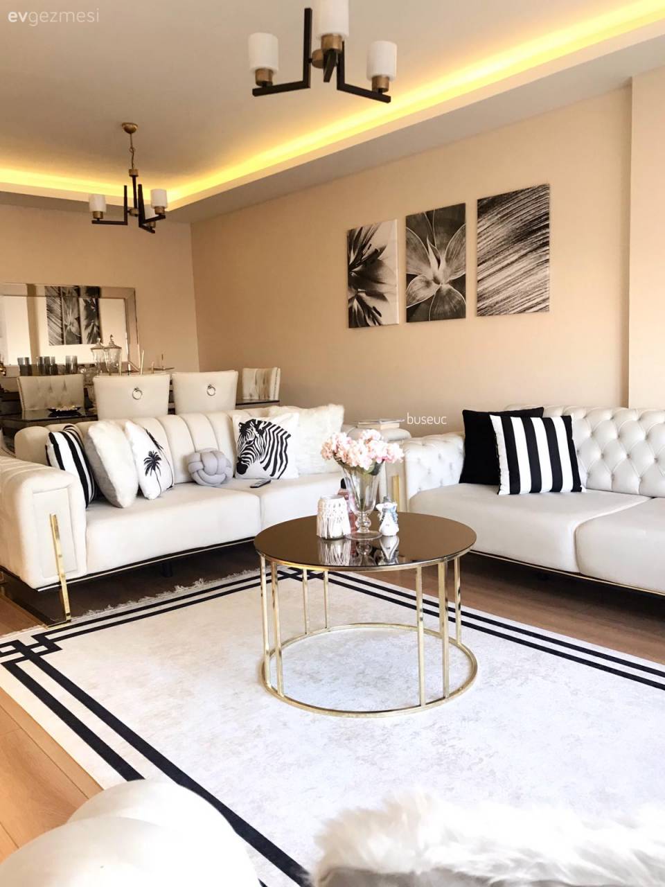 Salonun son dokunuşları için duvarları seçen ev sahibimiz, farklı boyuttaki tablolarla şık bir görüntü yakalamış.