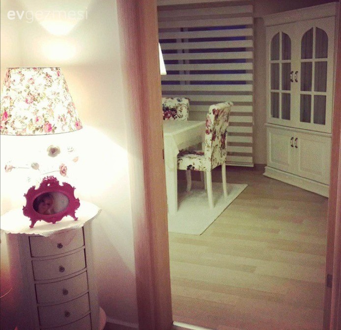 Şirin Hanım'ın pembelerle, çiçekler, country mobilyalarla büyük bir emek göstererek dekore ettiği evine bayılacaksınız eminiz. Ev sahibimiz amerikan mutfaklı evinde, yemek odasını salondan ayırıp çok şık bir misafir bölümü yaratmış. Çiçekli desenler, cıvıl cıvıl renkler çok uyumlu ve göz yormayacak şekilde kullanılmış ve insanın içini ısıtan bir dekor haline gelmiş. Mutfağın açıldığı balkon ise çiçekler, dekoratif objelerle renklenmiş. Çok zevkli bu eve eminiz bayılacaksınız, biz her bir köşesini ayrı beğendik.
