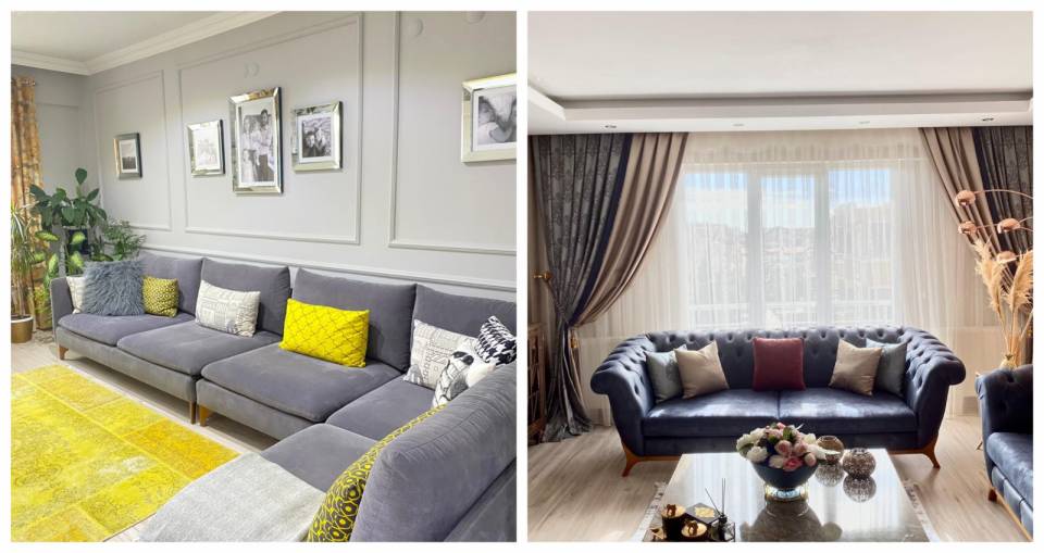 İki kanepenin temel parça olarak kullanıldığı salonda, gri, siyah ve beyaz uyumuna başvurulmuş: Birbirini çok seven bu üçlü, modern stile çok yakışan tonlar!
