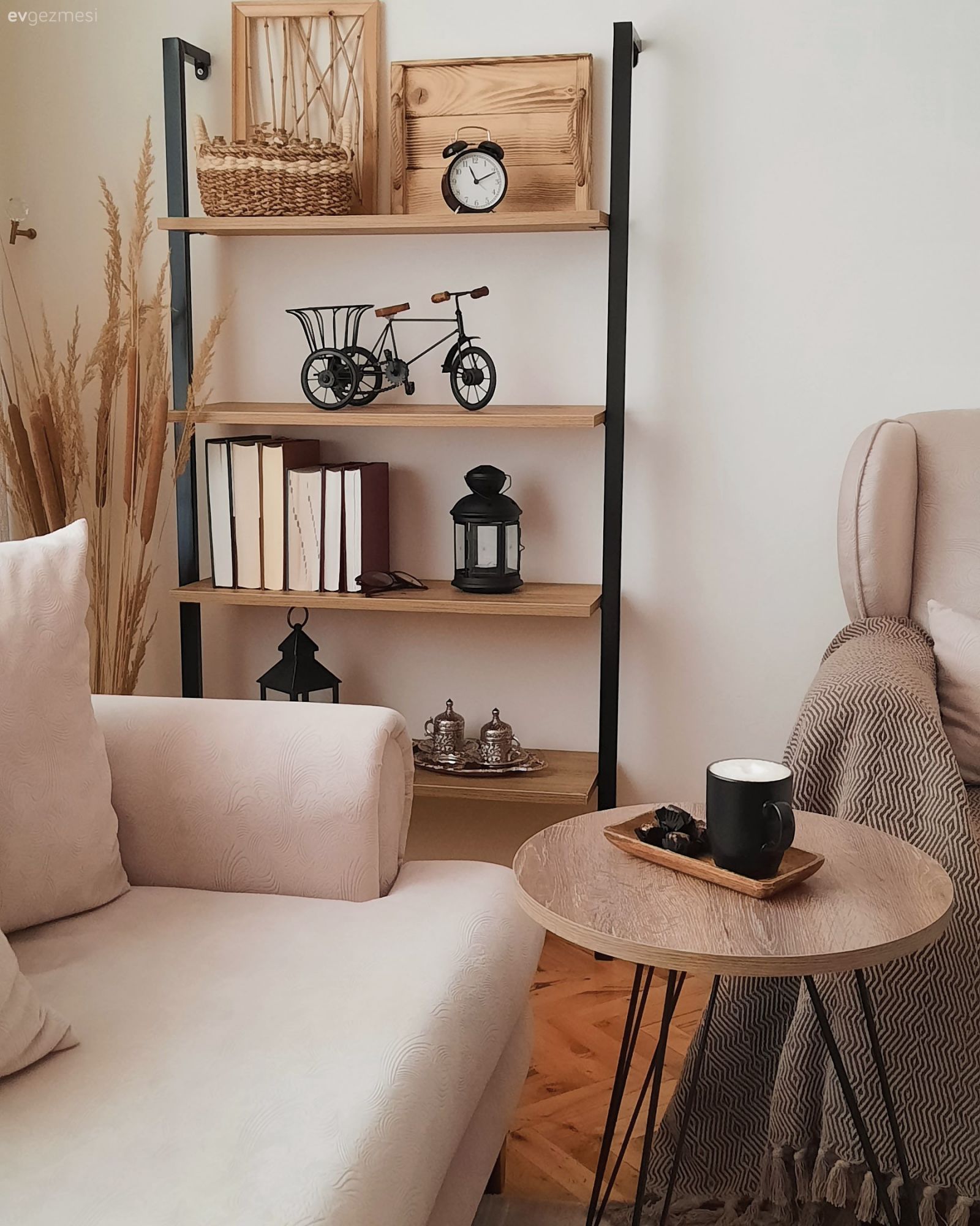Son dokunuşları duvarlarda yapan ev sahibimiz, metal duvar saati ve iki yanlı panolara yer vermiş.