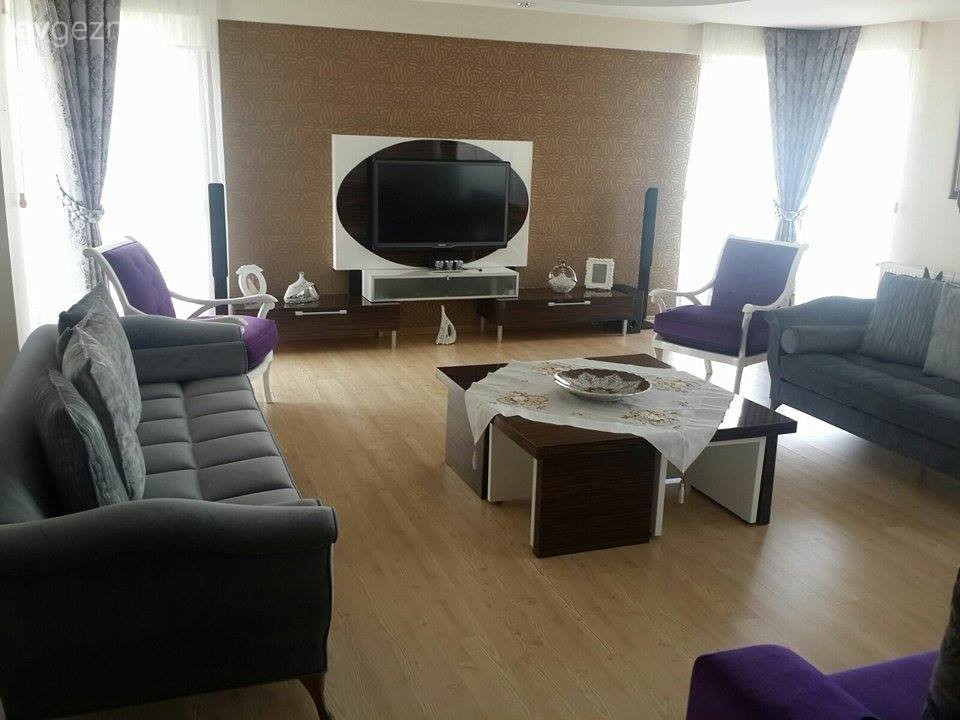 Mobilya seçimlerinde ahşabın öne çıktığı bu evde, salon dekorunda mor ve gri uyumu ön planda. Kullanıldığı her alana şık ve sofistike bir görünüm katmada çok başarılı olan mor, Ayşegül hanımın evine de bu havayı vermiş. Buyrun konuk olalım..