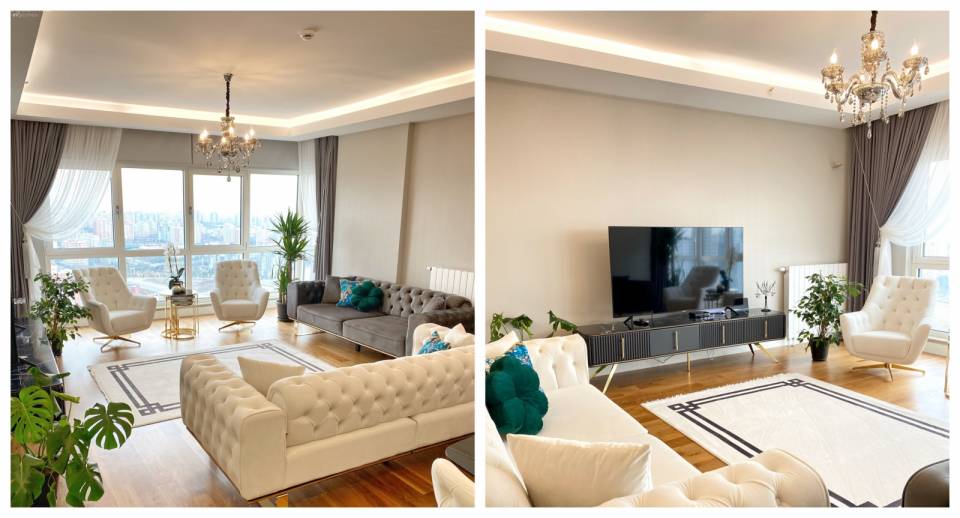 Kış bahçesi, Beyaz, Gri, Balkon masası, Sandalye, Stor perde, Balkon avizesi