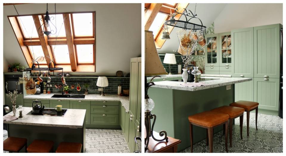 Country stil altında sunulan bu renk paleti hem kendine has bir hava oluşturmuş hem de ahşap detayların daha çok öne çıkmasını sağlamış.