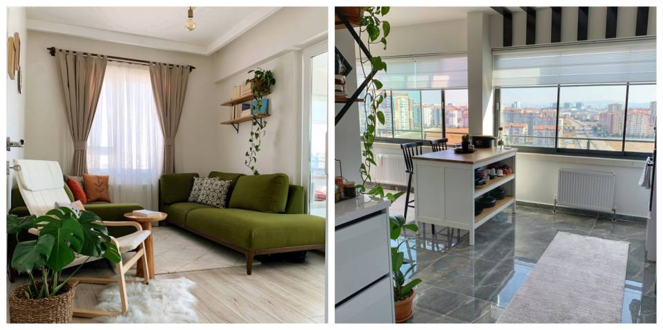 Renklerin ve bitkilerin ön planda olduğu evde, bohem stile başvurulmuş. Bohem ruhun salaş ve özgür hali, bütün eve yayılmış.