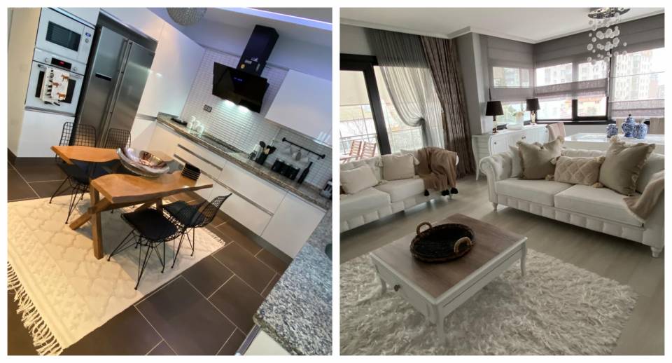 Evin tamamını bizimle paylaşan Canan Hanım, her alanda oldukça özenli davranmış. Beyaz ve siyahın buluştuğu mutfakta kırmızı ile ortama hareket katmış.