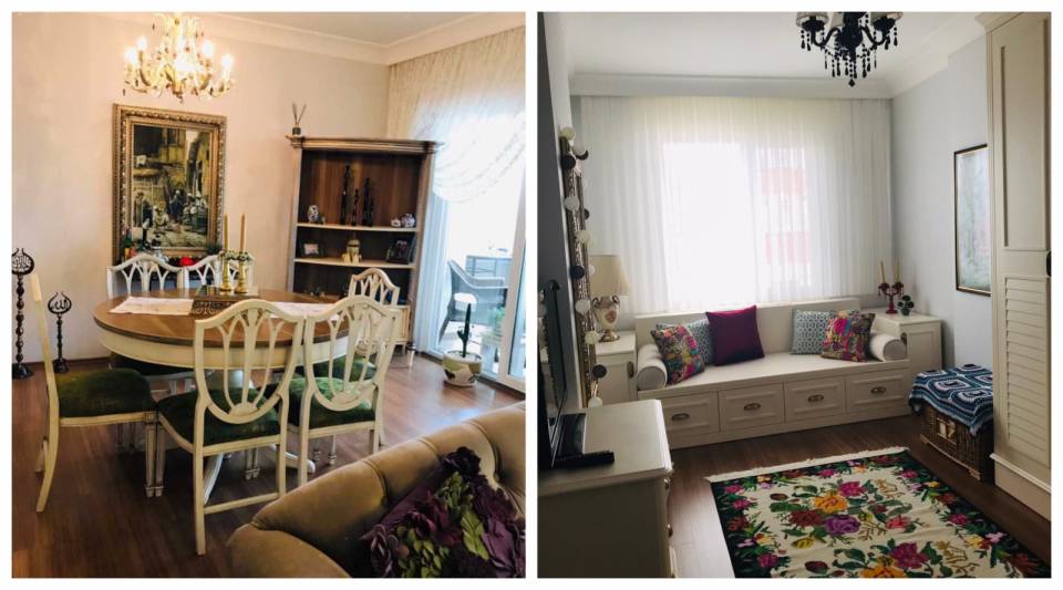 Ev sahibimiz canlı renklerden ve desenlerden aldığı enerjiyi yumuşatmak için mobilyalarında daha çok sadeliğie yönelmiş.