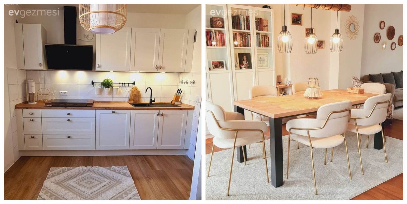 Mutfak, Beyaz, İskandinav, Beyaz ve ahşap mutfak, Ahşap mutfak tezgahı, Mutfak tezgahı, Mutfak tezgah arası, Tezgah arası seramik, Metro seramik, Seramik, Parke, Mutfak halısı, Davlumbaz, Mutfak Avize Modelleri, Mutfak aksesuarları