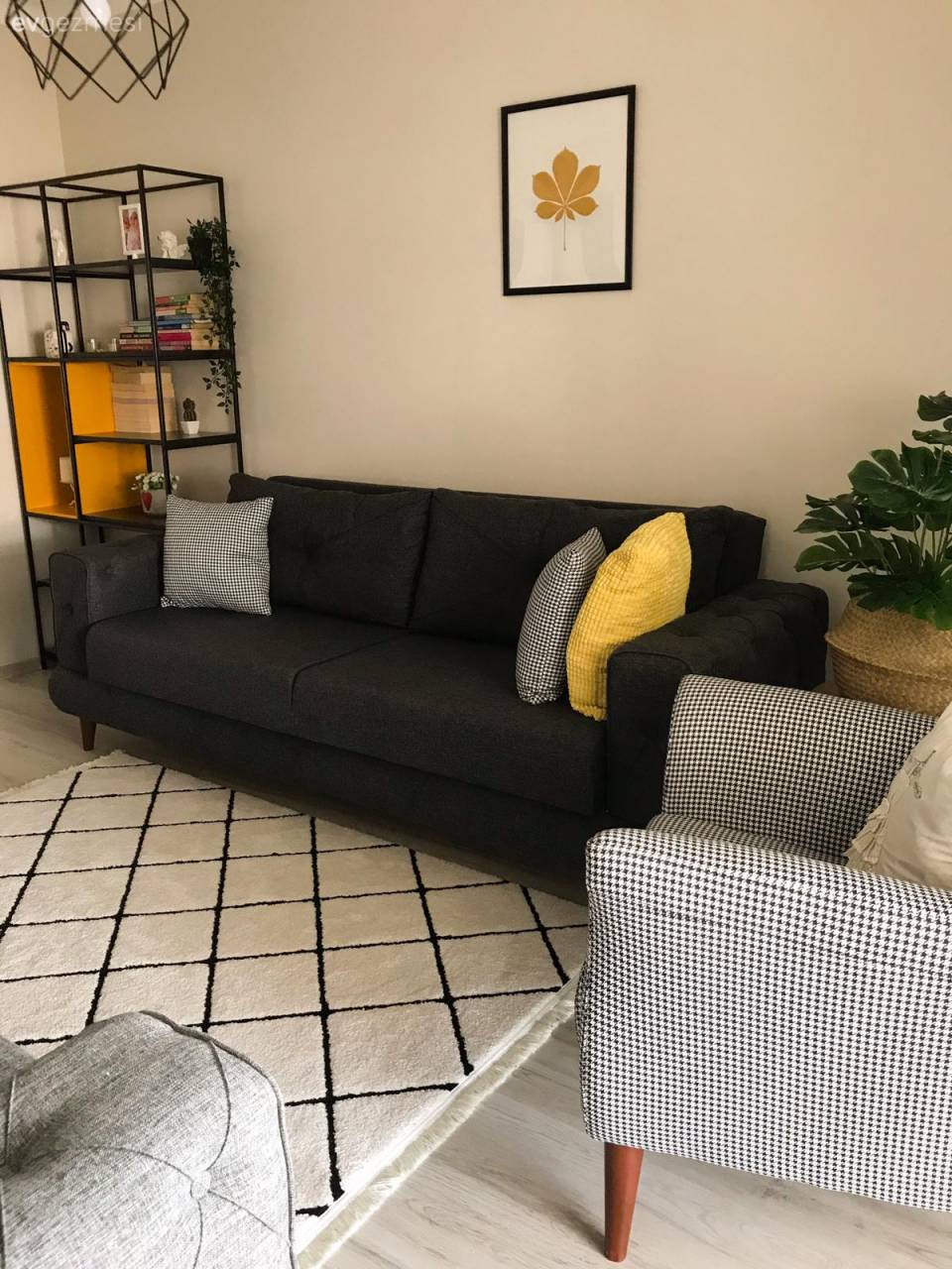 Oturma Odası, Beyaz, Gri, Turuncu, Köşe koltuk, Koltuk takımı, Duvar rafı, Duvar dekorasyonu, Makrome, Çiçeklik, Kırlent, Ev tekstili