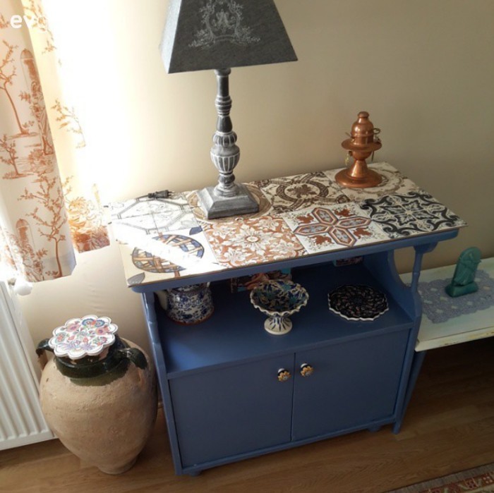 Evde köklü bir değişiklik yapma imkanınız yok, ama çini karoyu da dekora mı katmak istiyorsunuz? Bir dolabın üzerini kaplamak çok iyi bir fikir..