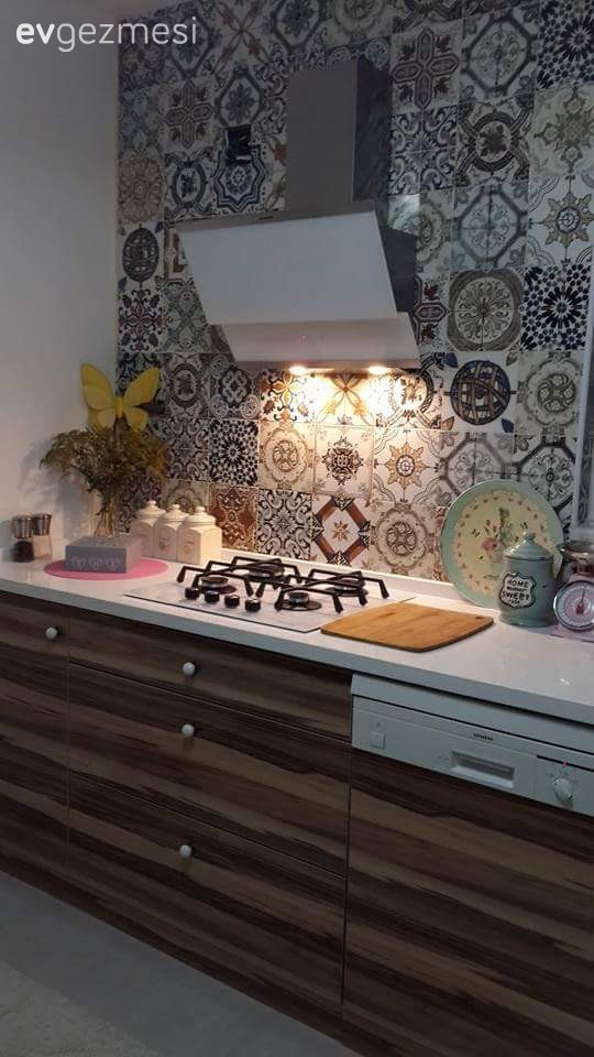 Tezgah arası fayanslarda nostaljik bir desen kullanımda..