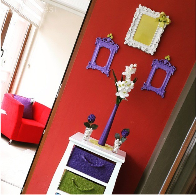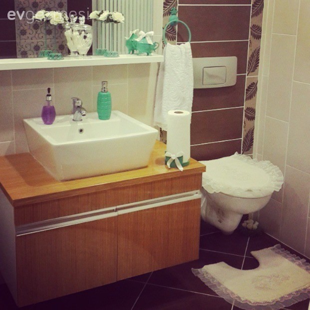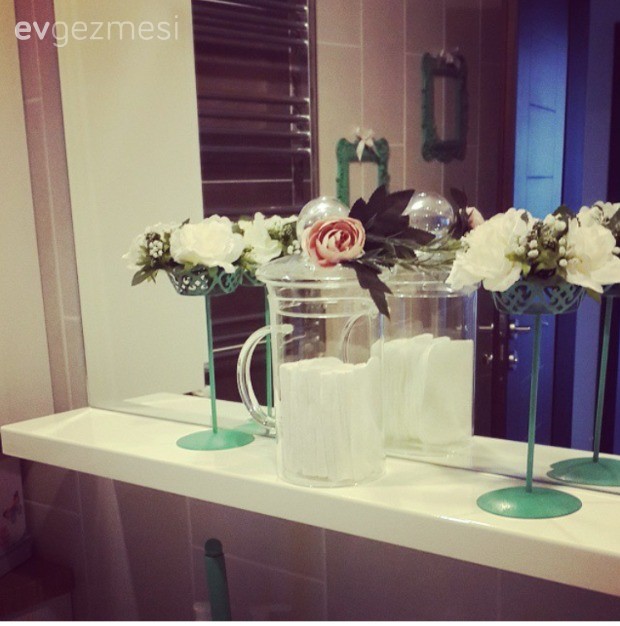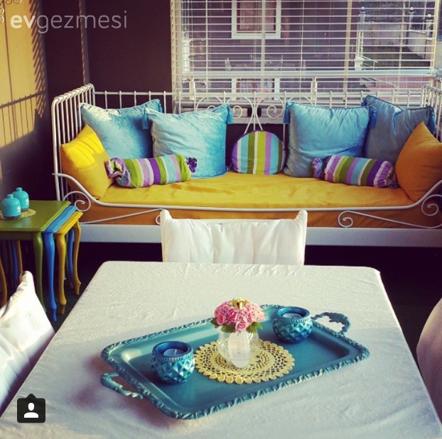 Hem becerikli, hem zevkli Leyla Hanım her odasında ayrı renk kullanmış, aksesuarlarını seçtiği renge boyamış ve rengarenk bir yaşam alanı yaratmış. Rengarenk sehpaları elimizden geldiğince sergilemeye çalıştık. Eminiz sizlere de bolca fikir vereceklerdir. Banyoda ise banyo aksesuarları, çöp kovasına kadar aynı renge boyanmış ve bizce harika olmuş.