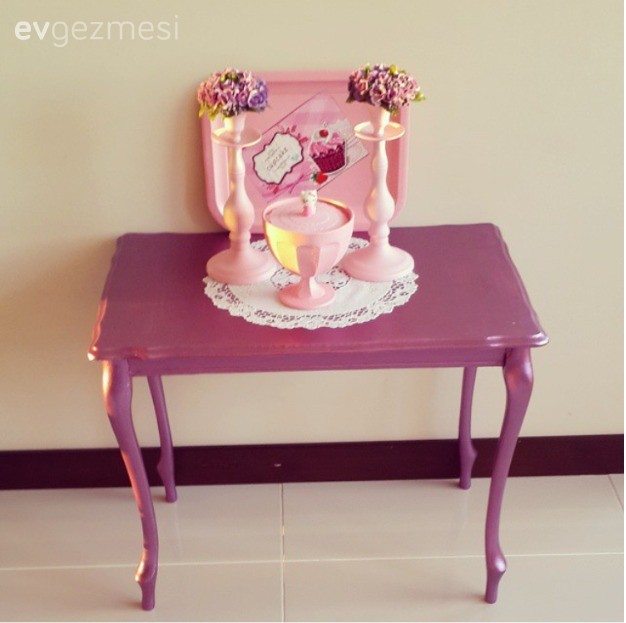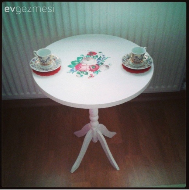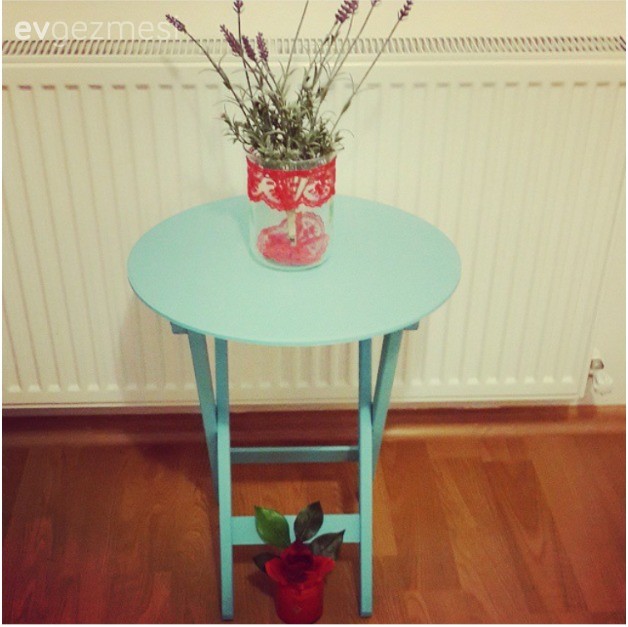 çok hoş olmuş, hep aynı sehpayı mı boyadınız leyla hanım? üzerine boyayınca tutuyor mu