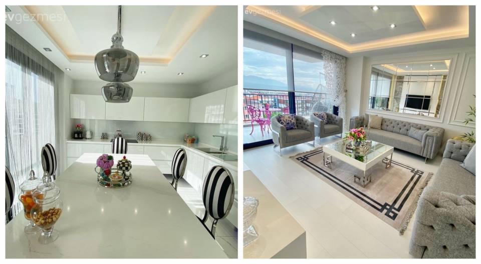 Tarz olarak bohem ve İskandinav esintilerinin öne çıktığı evde, geniş alanlar beyaz ve griye teslim edilmiş.