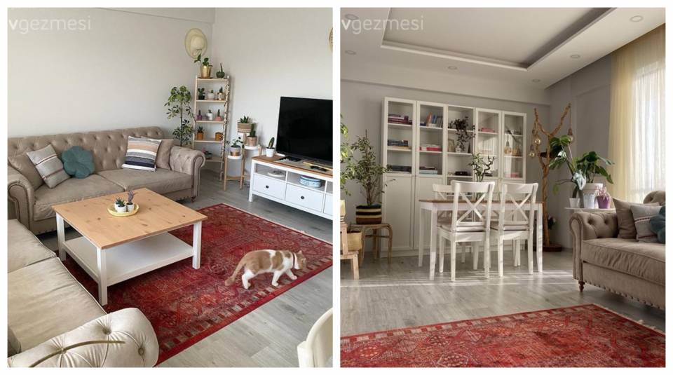 Alanın geneline uyumlu bir halı ve perdelerle de son rötuşlar tamamlanmış. Her şey bittikten sonra ev sahibinin isteğine göre bir yer ortaya çıkmış.