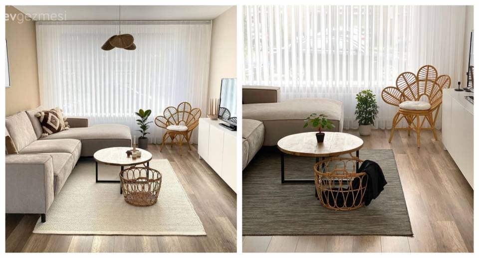 Pampaslar, duvar için tablolar ve birçok obje de farklı köşelere serpiştirildikten sonra kış bahçesi salondan hallice bir dekora kavuşmuş.
