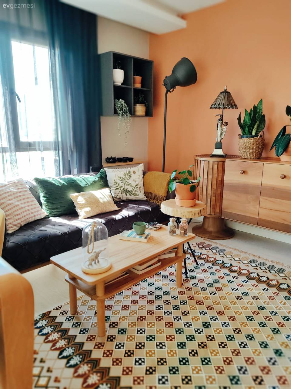 Salondan sonra sırayı alan oturma odası evin en renkli köşesi! Kırmızının hakim olduğu bu oda günlük kullanıma uygun şekilde dekore edilmiş.