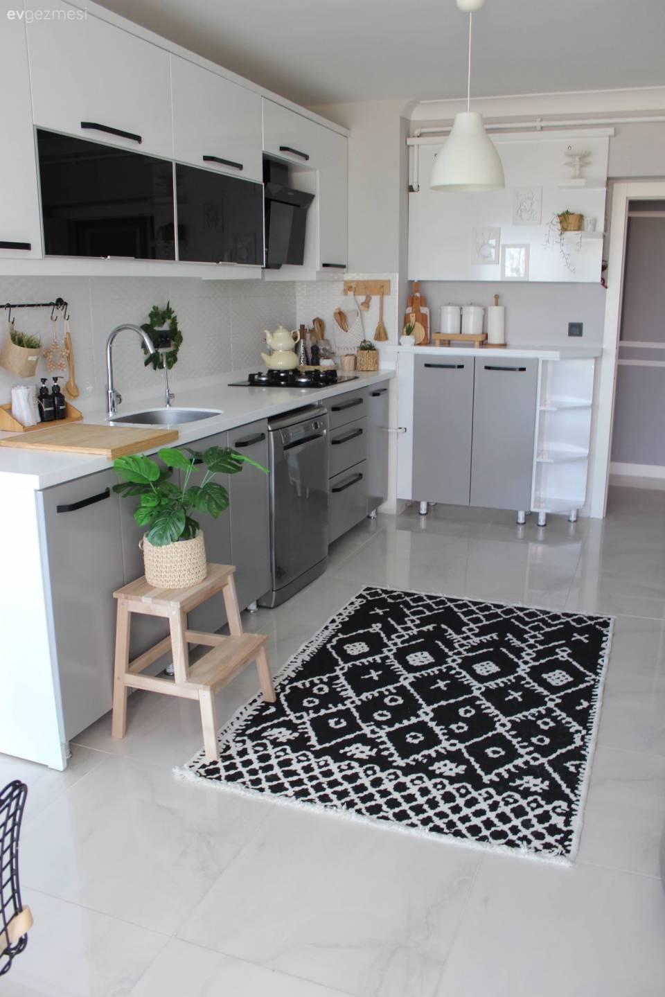 Mutfak, Beyaz, Beyaz mutfak, Koridor tipi mutfak, Mutfak tezgahı, Mutfak tezgah arası, Mutfak halısı, Ankastre, Tezgah arası seramik, Modern, İskandinav