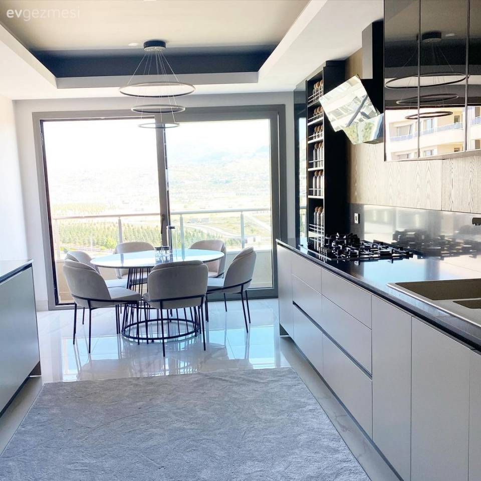 Keyifli atmosferler oluşturmaktan yana olan ev sahibimiz, mutfağında da bundan taviz vermemiş: Keyifli ve konforlu bir alan ortaya çıkarmış.