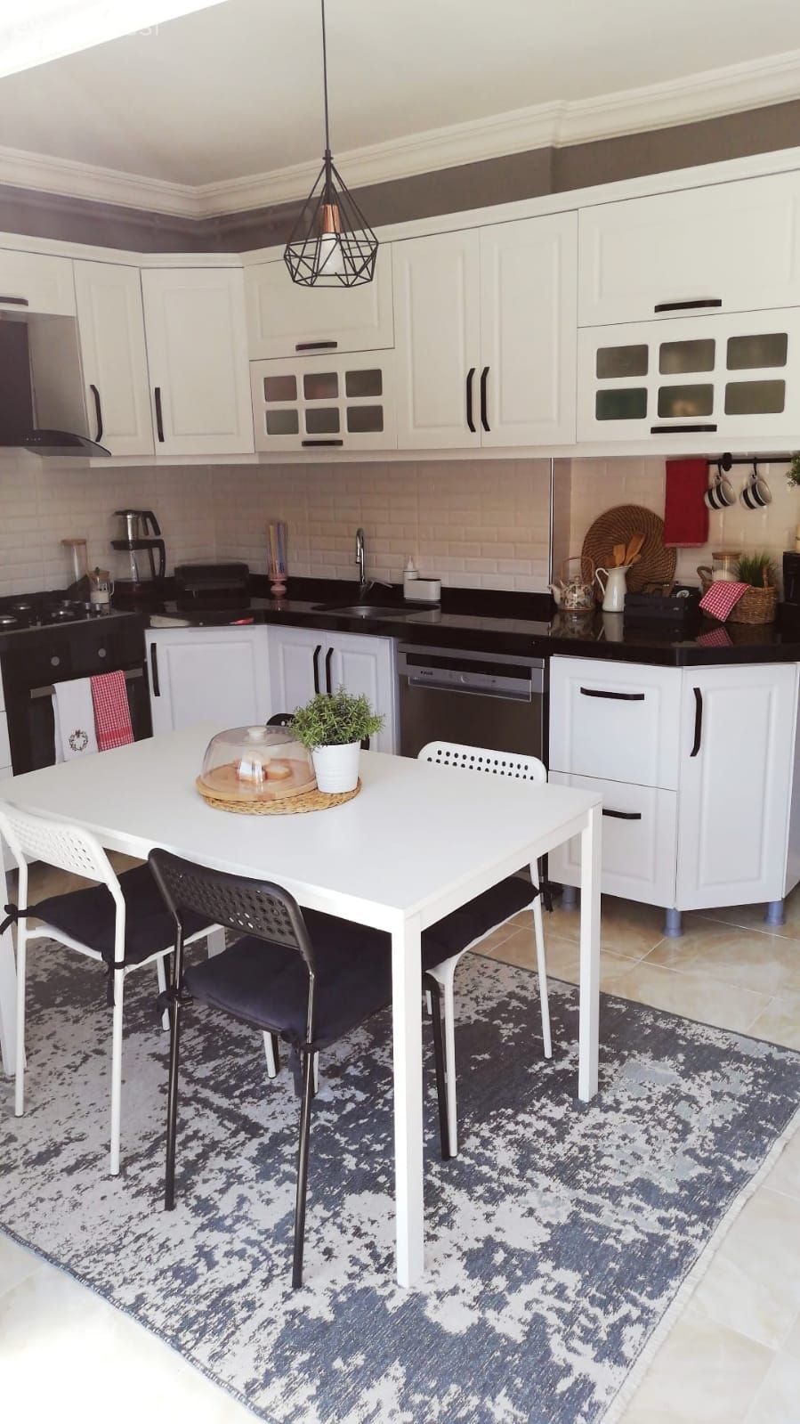 Alan olarak çok büyük olmayan mutfak için işlevsel bir yerleşim planı uygulanmış: Hazırlık ve pişirme bölümlerinin yakınına yerleştirilen masa, ev sahibine kolaylık sağlamış.
