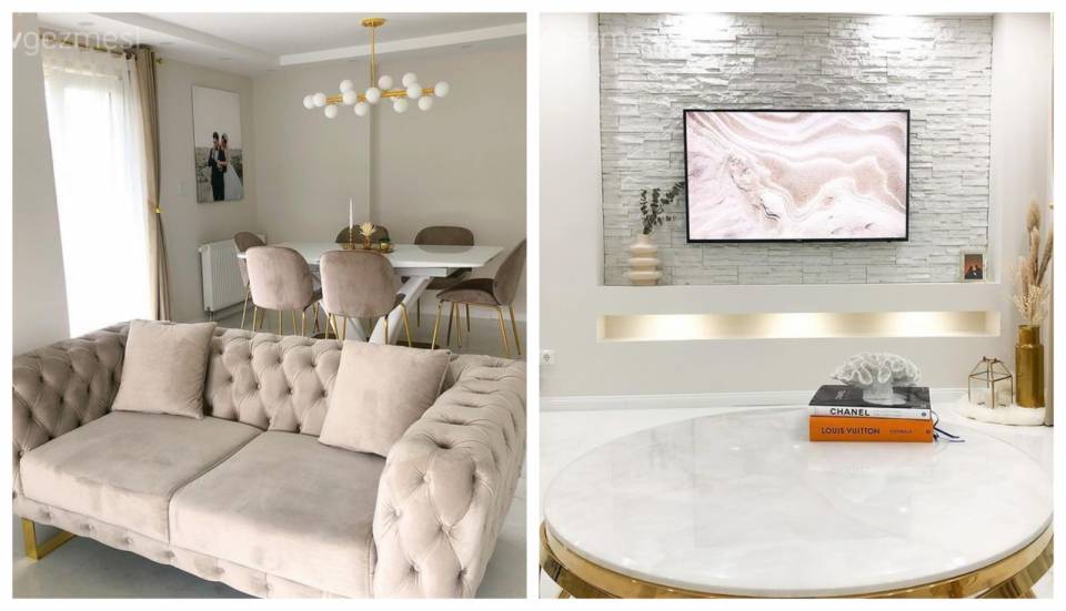 Açık renklerin hakim olduğu dekorda tamamen modern esintiler kullanılmış: Modern tasarımlar yine modernin çok sevdiği nötr renklerde sunulmuş.