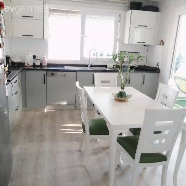 Kış bahçesinin devamında bizleri karşılayan mutfak tıpkı eskisi gibi yüksek enerjisiyle "hoş geldin" diyor. Ama bu defa bir fark var: Mutfak adası!