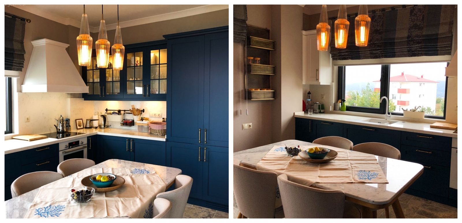 Mutfak, Beyaz, Mavi, İndigo Mavisi, Sandalye, Mutfak masası, Mutfak tezgahı, Mutfak tezgah arası, Mutfak perdesi, Katlamalı perde, Perde, Mutfak Avize Modelleri, Mutfak rafı