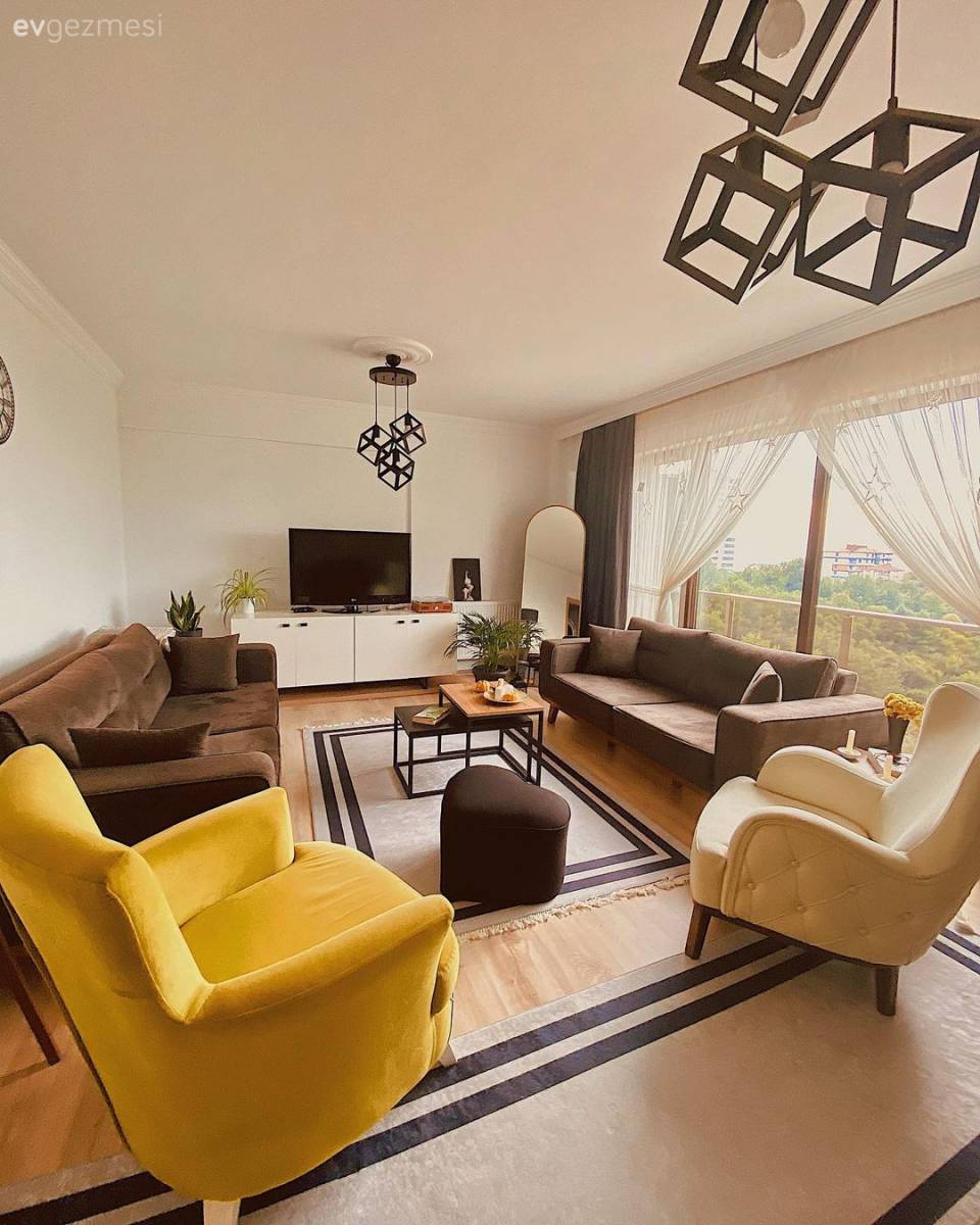 Böyle bir yerleşim şekli uygularken çok yer kaplamayan kıvrımlı hatlı sehpalar ve desenli halılar tercih ederseniz ortam daha samimi bir ha alır.
