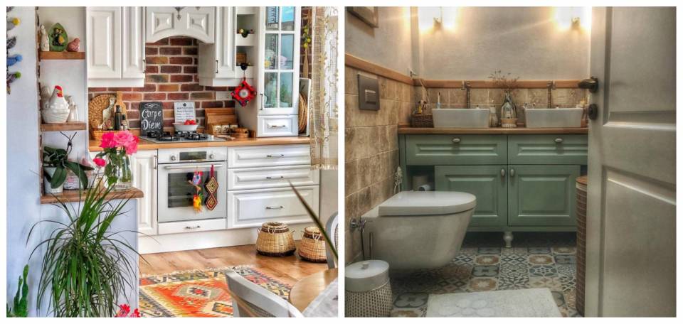 Bohem etkilerin de alana dahil olmasını isteyen ev sahibimiz, hazeran kapakları ve rattan detayları da eksik etmemiş.