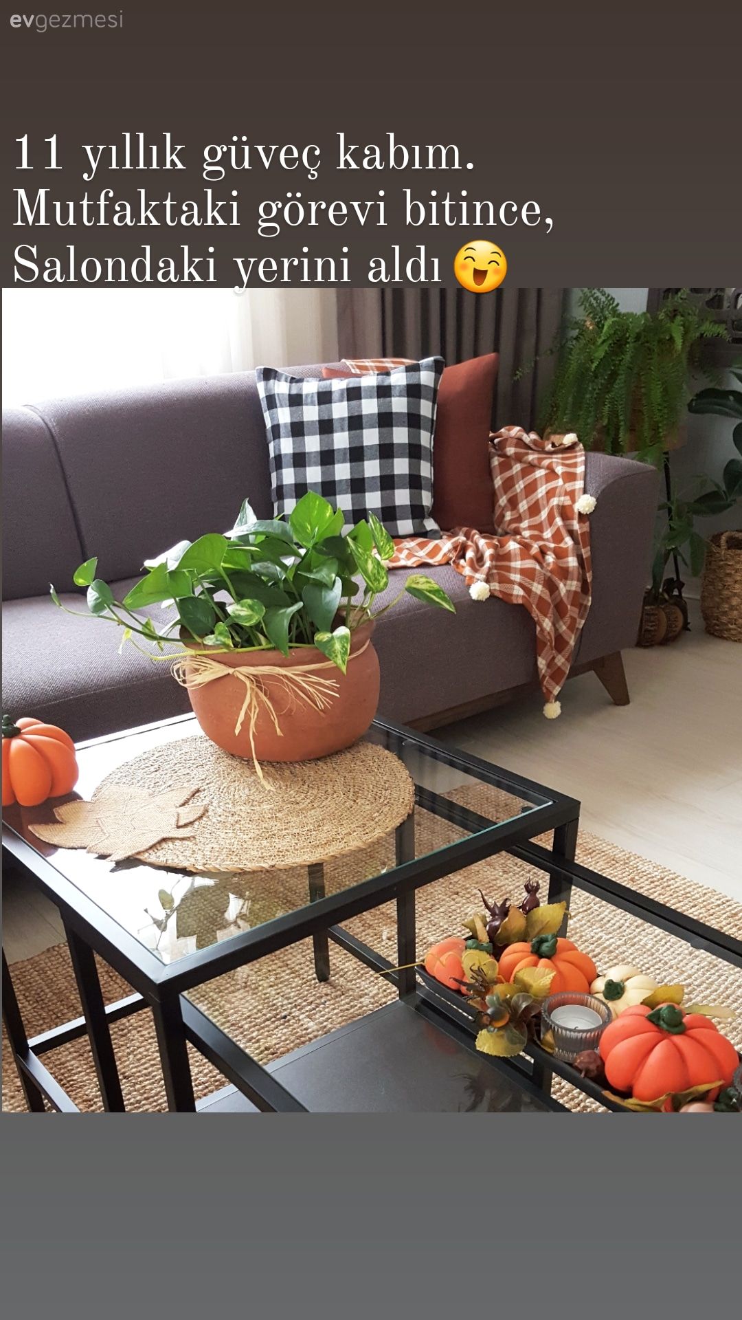 Oldukça uyumlu bir görüntü yaratan bu mobilyalara hareket katmak için de kırlentler devreye girmiş. Sarı ve turuncunun belli belirsiz sesiyle ortam daha bir keyiflenmiş.