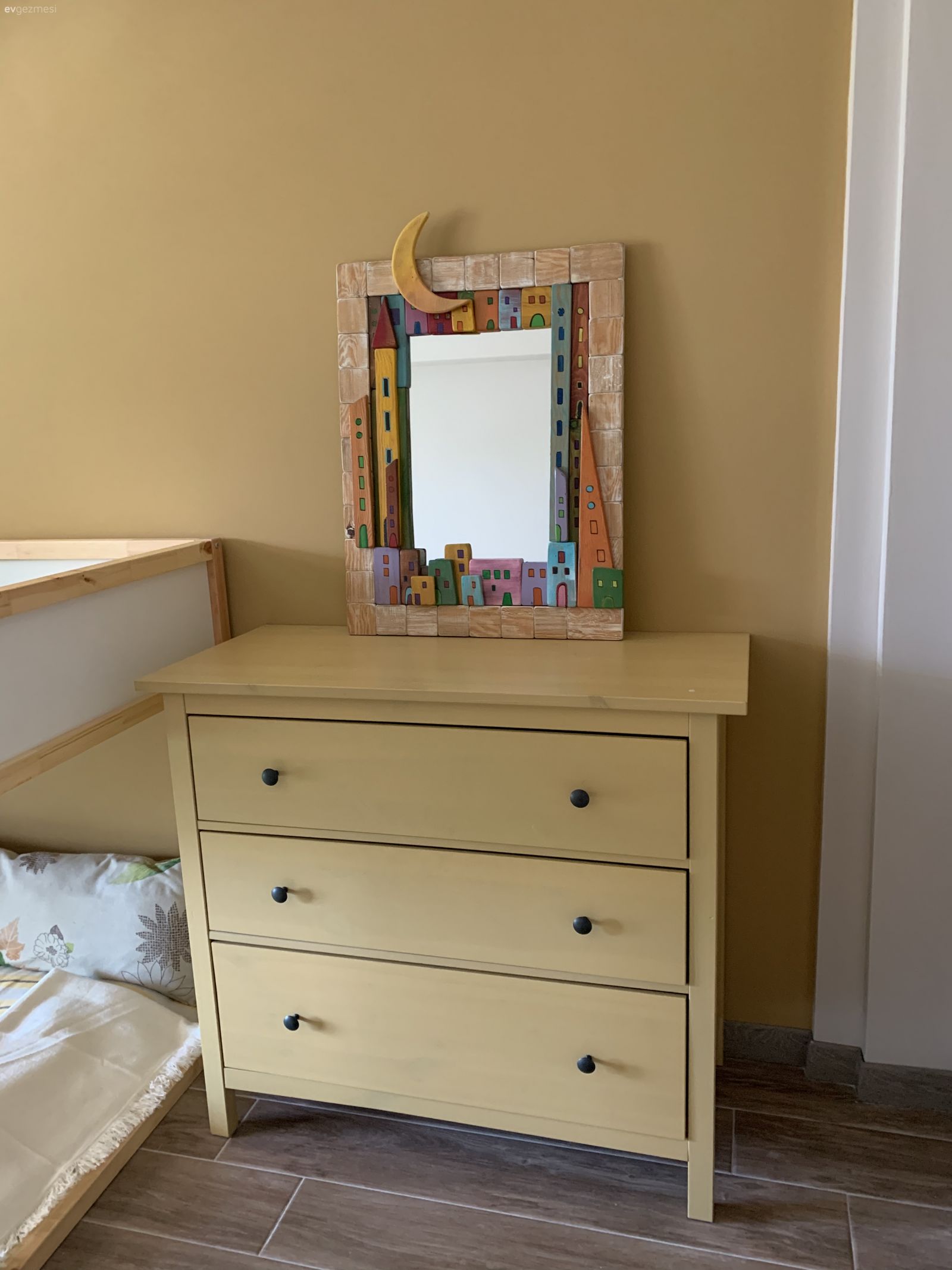Muğla/ Menteşe’de müstakil bir villa! Salon mobilyaları Stella mobilyadan.Çocuk odası ranza, şifonyer ve gardrop Ikea, çocuk odası ayna Muğla’da yerel bir firmadan alındı. Çocuk odası masa üstü daha önce kullandığım divanın arka kısmı idi. Mutfağın çizimi bana ait.