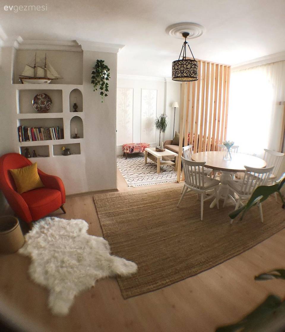 Konforlu bir yaşam alanı oluşturmak isteyen Esra Hanım, salonun merkezinde köşe koltuk kullanmış.
