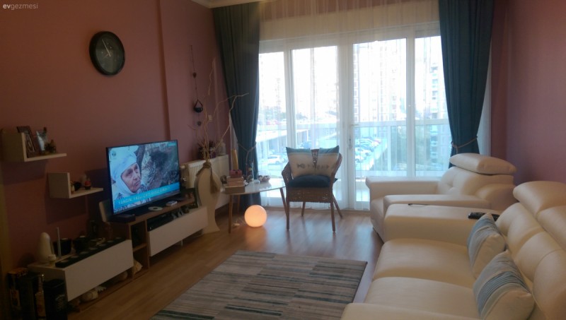 salonun renk uyumuna bayıldım.. doğru tonlarda kullanıldığında her renk güzel oluyor.. pembenin bu tonu doğru bir ton işte.. yalnız yatak odası ve diğer alanlarda çok fazla süs eşyası kullanılmış küçük küçük.. bence hiç gerek yok bu kadarına