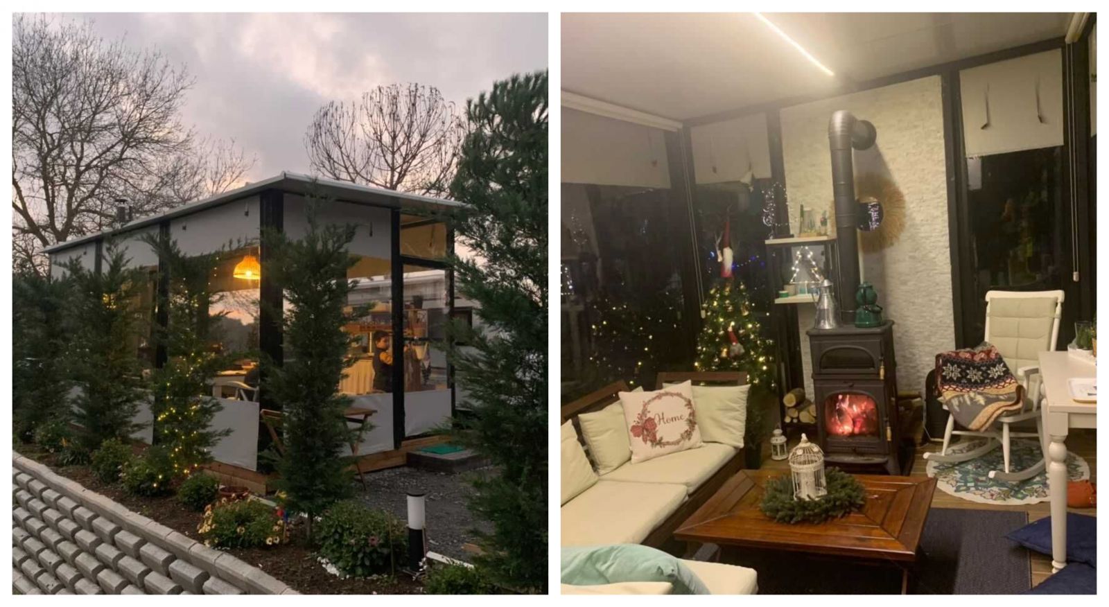 Karavanlarıyla yeni yerler keşfeden çiftimiz şu sıra karavanı park ettikleri kampın yanına bir kış bahçesi yapmış. Bu bahçe de hafta sonlarının geçirildiği kulübeye dönüşmüş.