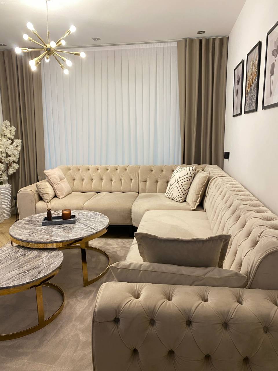 Mutfaktan sonra bizi karşılayan salona sıra geldiğinde bu bölümde ev sahibinin sevdiği çizgiler biraz farklılaşmaya başlamış: Moderne yakın tasarımlar güçlü renklerle sunulmuş!