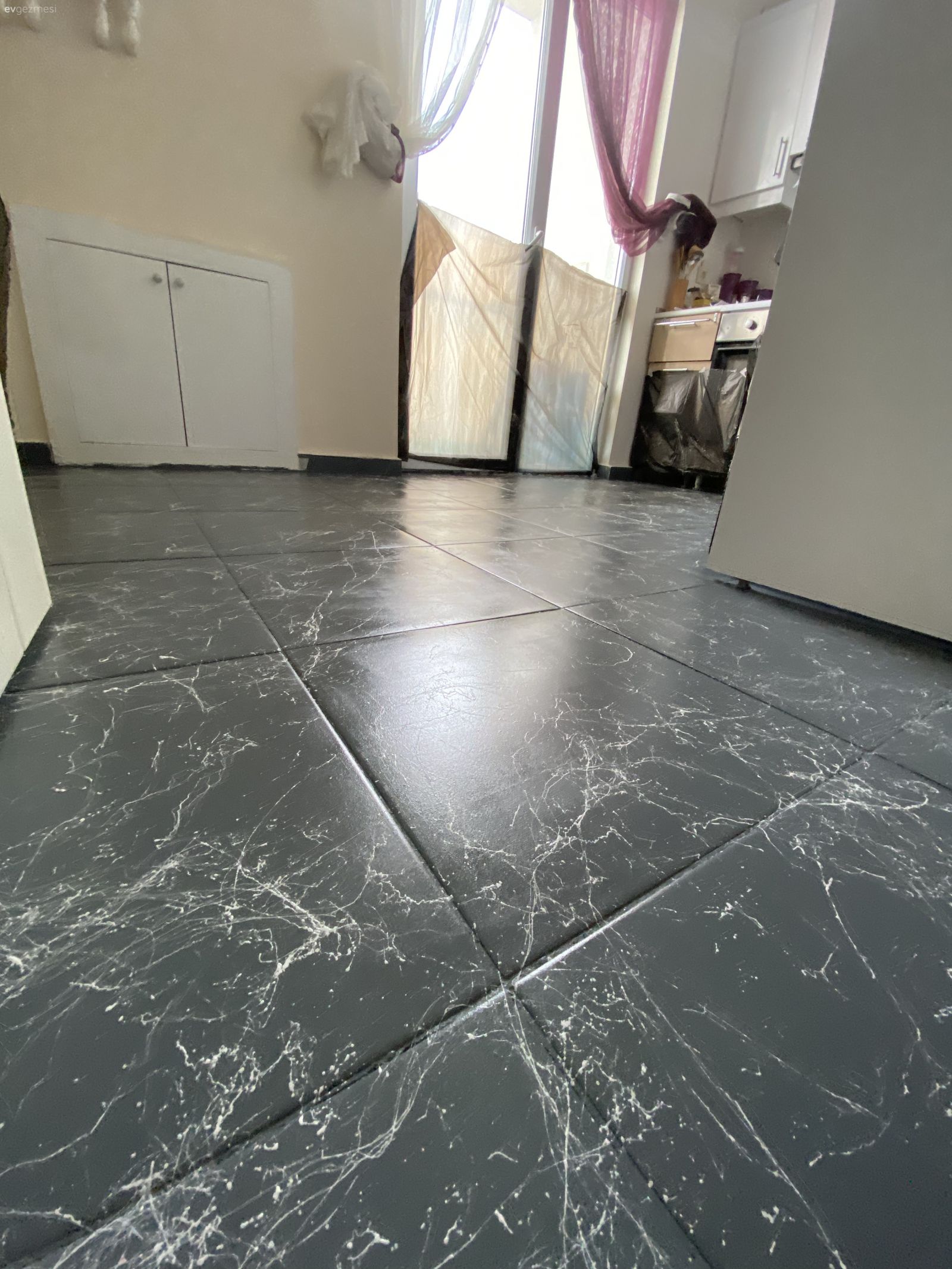 Beyaz ve siyahın buluştuğu bu alanda tezgah arasında kullanılan parlak seramikler klasik stili yansıtmış. Sandalyeler ve avize de countrye atıf yapmış.