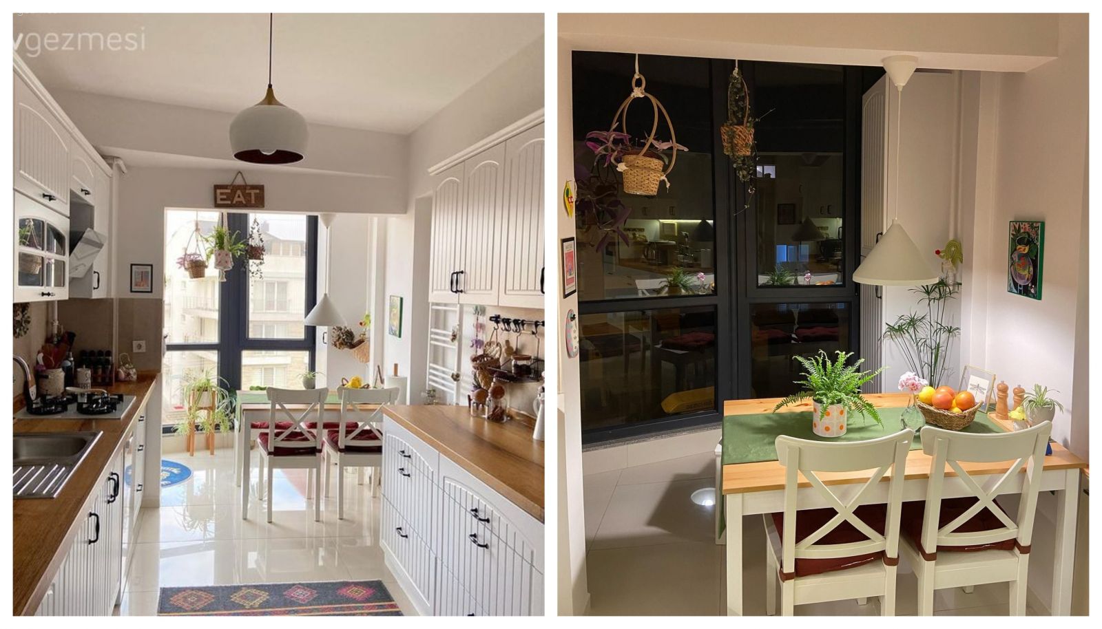 Dekorasyon işleriyle oldukça ilgili olan Elif Hanım, referans aldığı stilleri, sevdiği detaylarla kişisel hale getirmiş: Çok sevdiği bitkiler ve kendi dokunuşları dekorun birçok noktasında eksik bırakılmamış.