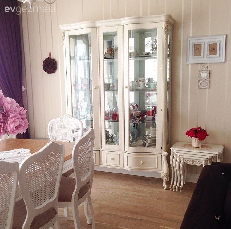 Country tarzı, kırmızı aksesuarlarla hareketlenmiş bu şık mutfakta yemek yapmak ayrı bir keyiftir eminiz. Salonda ise antik mobilya stili hakim. Biz özellikle yemek takımına bayıldık. Özellikle balkon karoları ve balkon mobilyalarına dikkat etmenizi öneririz, balkon veya teras döşemesi düşünenler çok güzel fikirler alacaksınız eminiz.