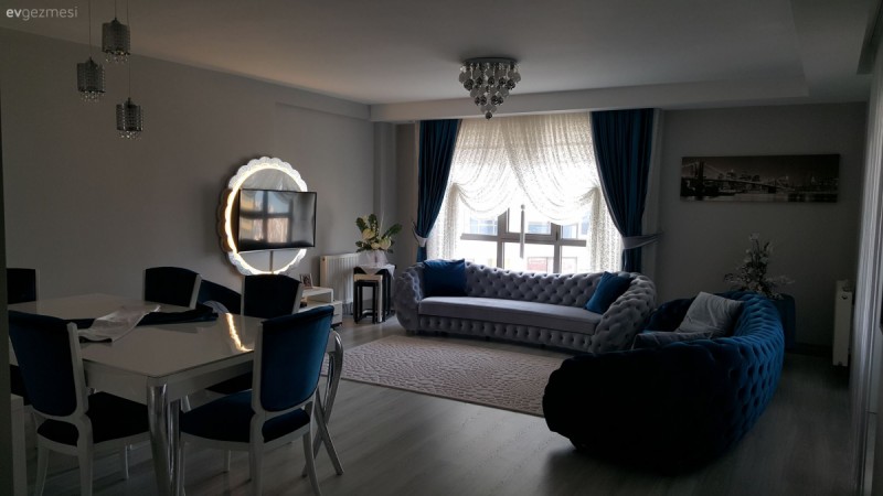 Perdeleri sevmedim.Birde mavi koltugunuzu farkli bir koseye tek olarak koyup okuma kosesi tarzinda bir kose olusturursaniz bence daha guzel olur.bunlarin haricinde zevkli bir ev?