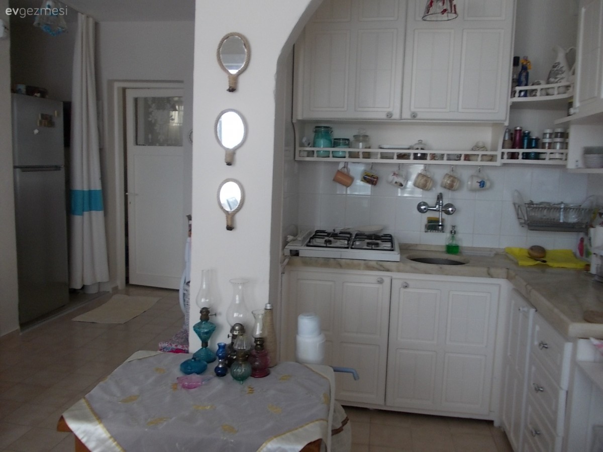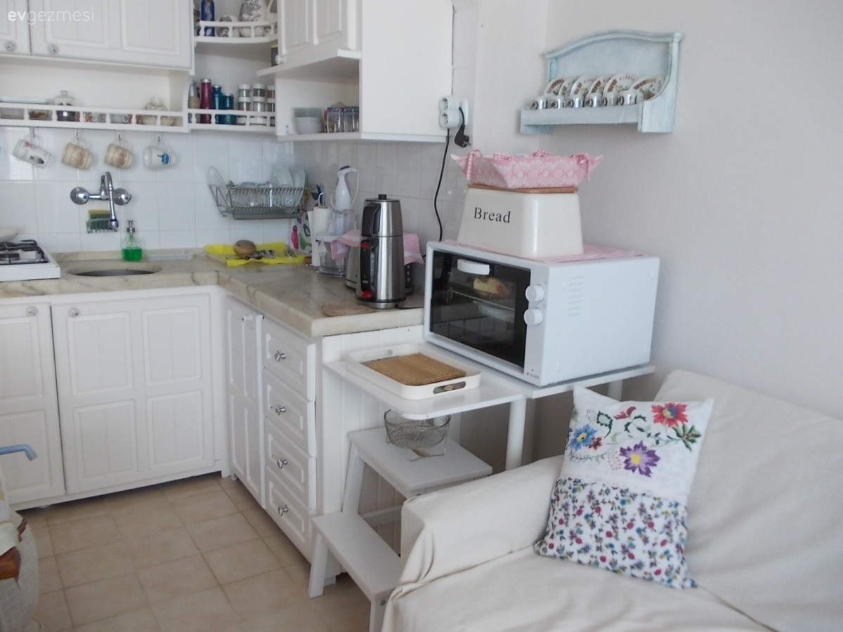 Didim de 50 m2 lik dairemin açık mutfağı salonu ve banosu.