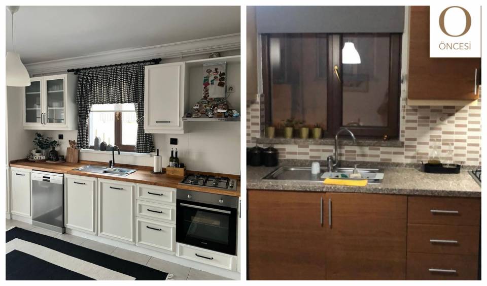 Salondan sonra bizi karşılayan mutfak metrekare olarak oldukça küçük! O yüzden bu bölüm daha çok ferahlığa ihtiyaç duymuş.