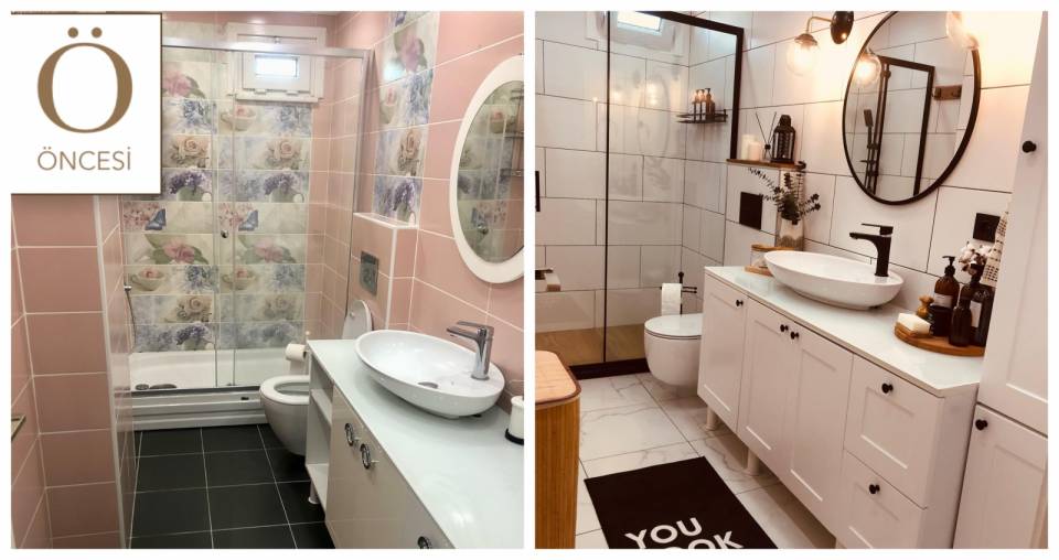 Şimdi sizinle sıradan halinden sofistike-modern tavra geçiş yapan bir banyoya konuk oluyoruz. Bizi ev sahibimizi Dilek Hanım karşılıyor.