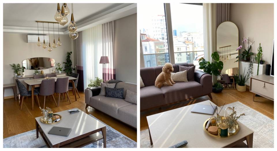 Minimalizmden beslenen bu dekorda, nötr tonlar bitkilerle hareket kazanmış.