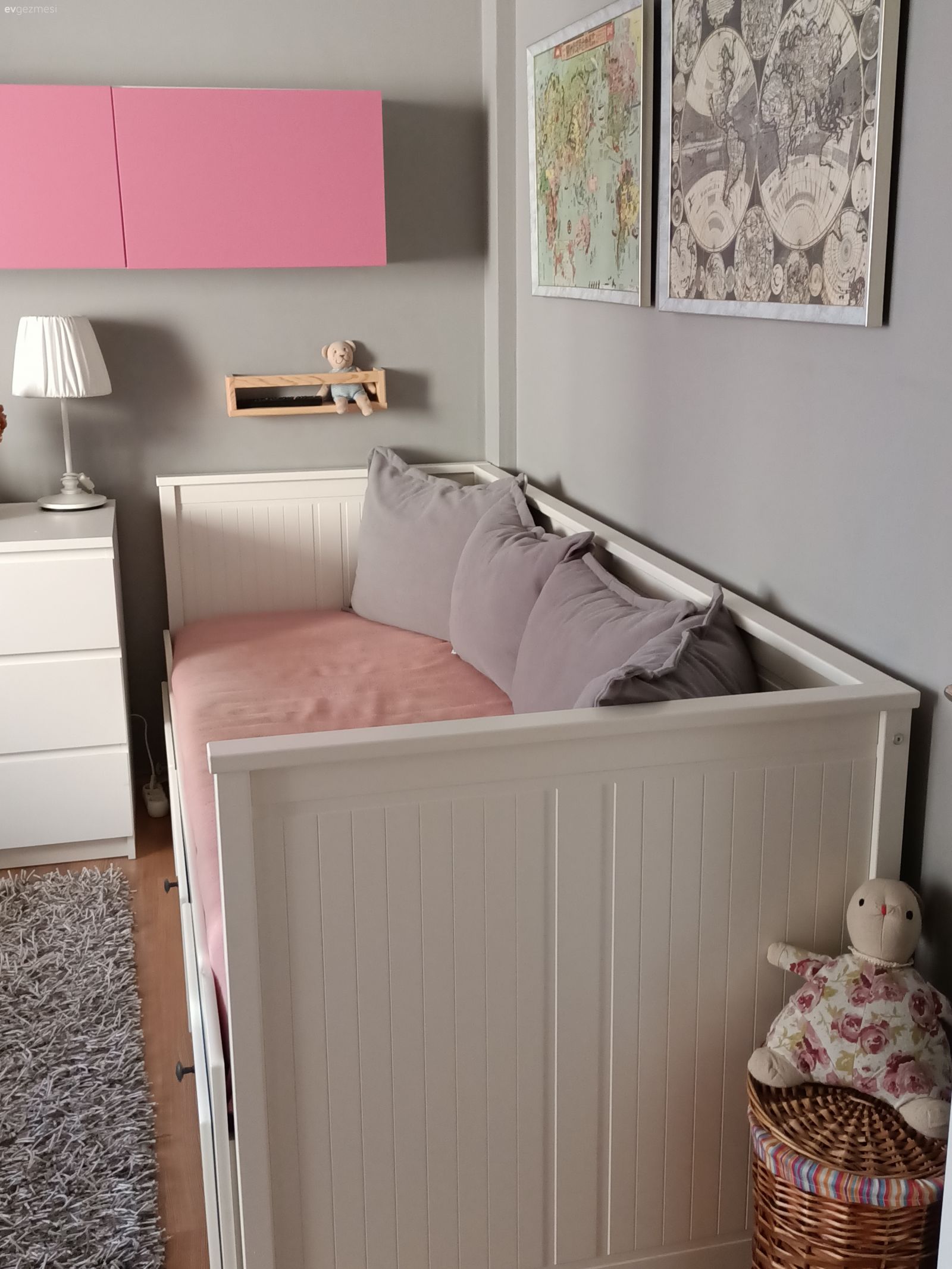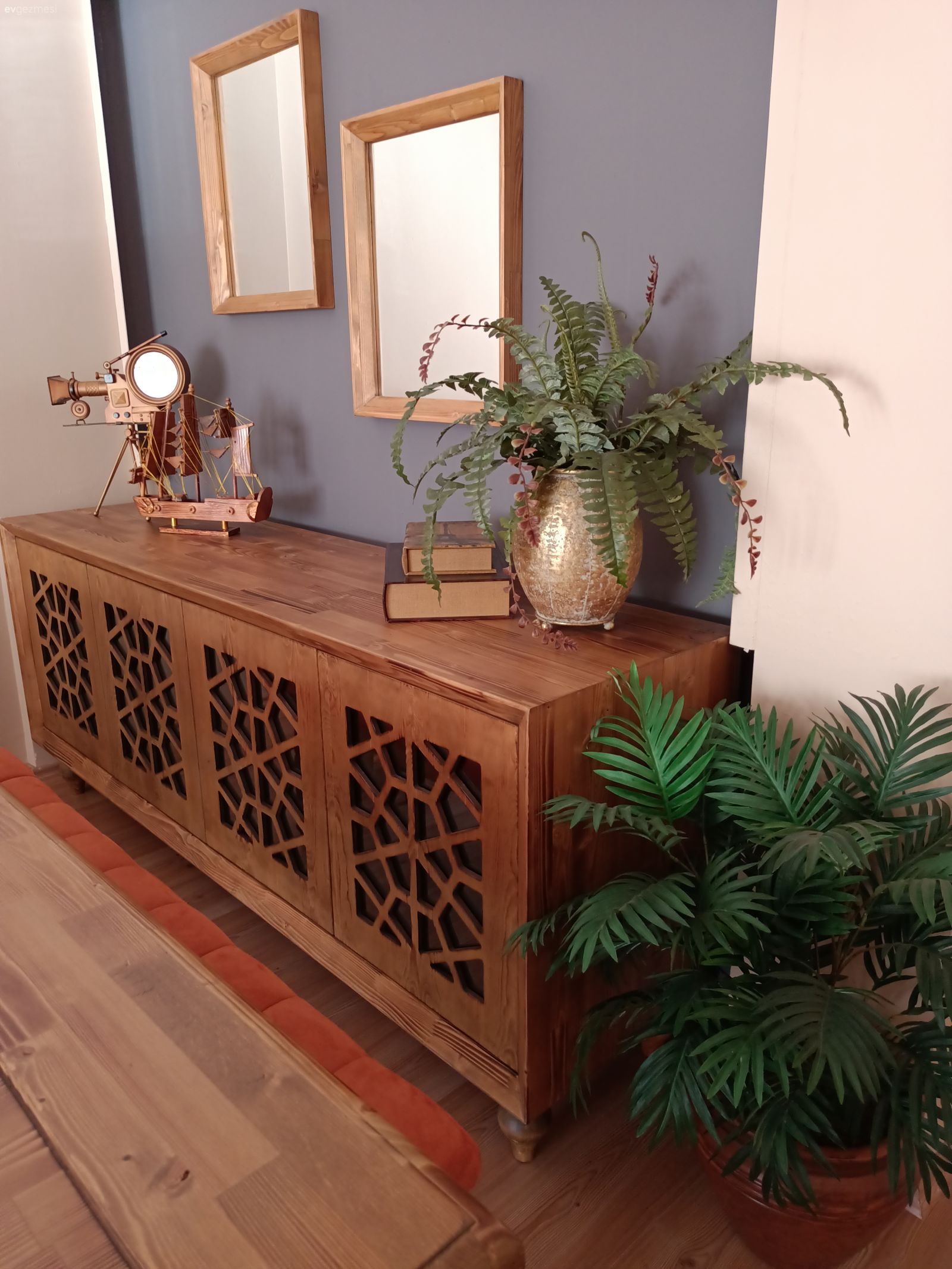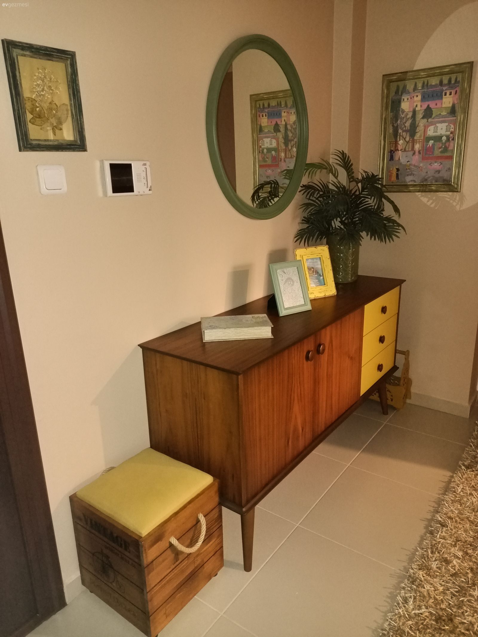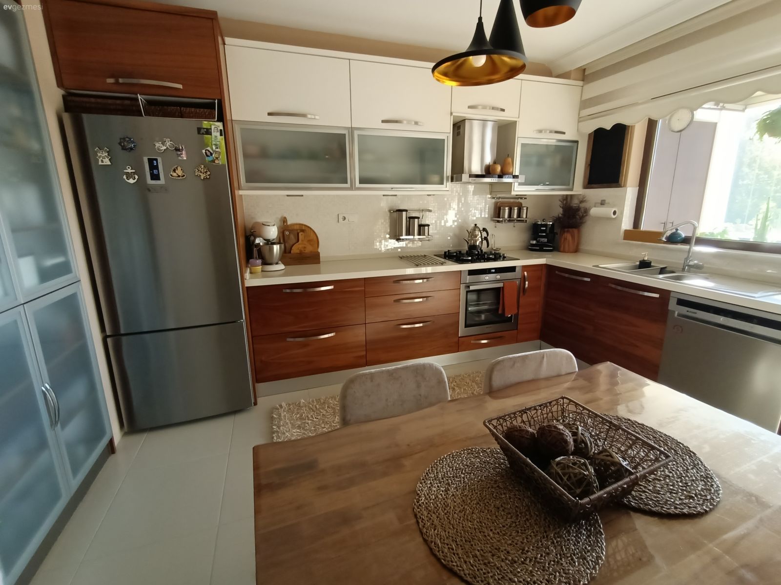 Her şeyin özenle seçildiği belli ve hepsi zevk sahibi biri tarafından seçildiği de belli. Yalnız ev çok karanlık geldi bana. Ev sabah güneşini görmeyen taraftadır galiba. Bu durumu az da olsun düzeltmek için perde renkleri biraz daha açık tercih edile bilirdi.