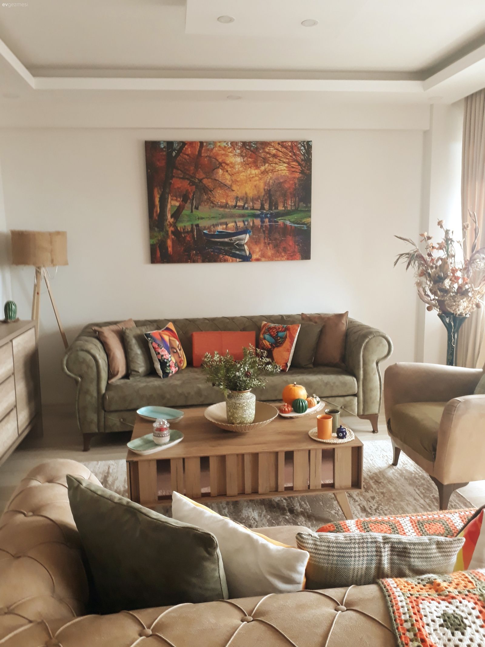 Otantik bir görünüme sahip olan banyonun birçok aksesuarını daha bizzat yapan Gönül Hanım, ortamın ruhuna uygun bir jüt halı kullanmış. Pampas bitkisi de işin içine karışınca bohem ruh kendini belli etmiş.