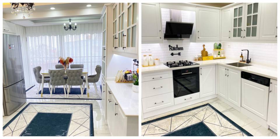 64 metrekarelik prefabrik ev oluştuktan sonra Vildan Hanım kendi yeteneklerini devreye koymuş: Kanaviçe perdeler, geri dönüştürülebilir mobilyalar..