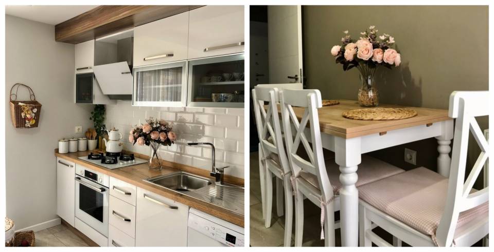 Arsamızın içinde yaklaşık 60 yaşında olan bir taş ev vardı. Kendi doğal dokusunu bozmadan kendi taşlarını kullanarak restore ettik. Yaklaşık 150 m2, 3+1 bir ev oluştu bize. Mutfağımız en altta eskiden ahır olarak kullanılmış bölümün dönüştürülmesiyle oluştu. Yer kazanımını düşünerek içerden merdiven koymadık üst kata. Mutfak ayrı bir bölüm sanki evden!