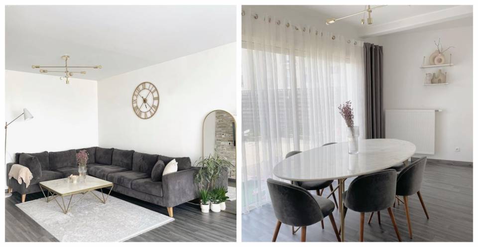 Köşe koltuğun hemen arkasında kalan duvar ise biraz daha kontrast oluşturacak şekilde: Antrasit rengini kuşanmış bu duvar çıtalar ve duvar süsleriyle oldukça çekici!