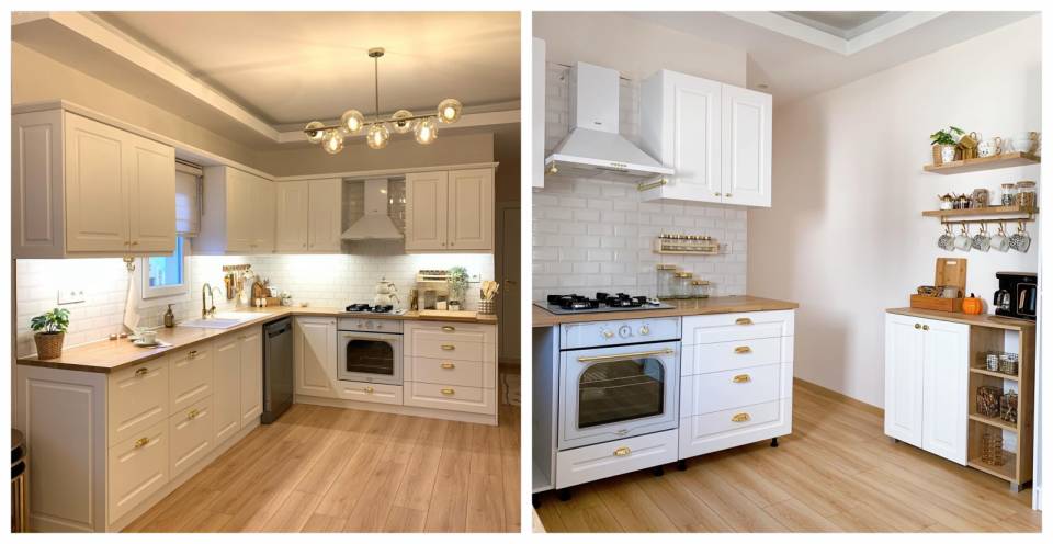 Alt katta yer alan bir diğer yer de mutfak! Beyazın hakim olduğu bu bölümde İskandinav esintilerini yansıtan hazeran sandalyeler tamamlayıcı olmuş.