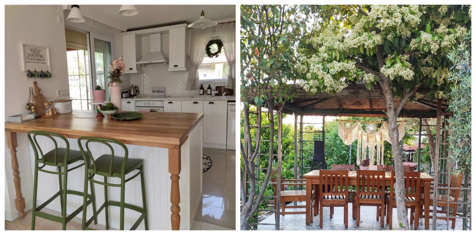 Country stilden ilham alan mutfakta beyaz ve ahşabın birlikteliğine başvurulmuş. Ortamın neşe kaynağı olarak da yeşil ve pembeden yararlanılmış.