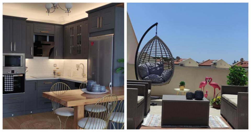 Terasında zaman geçirmeyi çok seven ev sahibimiz, kendisi ve köpeği için uygun bir alan oluşturmuş.